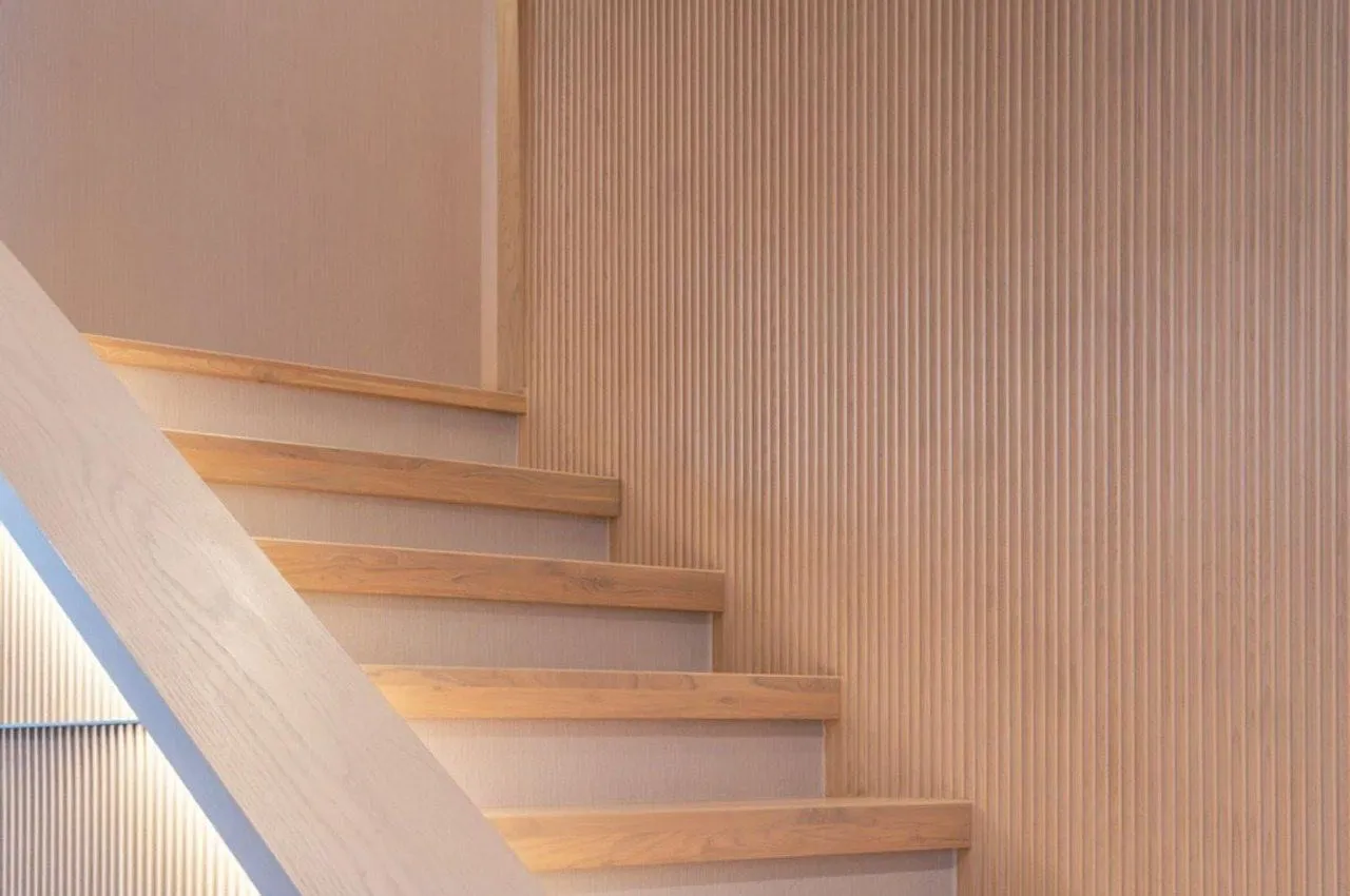 Основа лестницы: Деревянная отделка одинаково хорошо подходит как для бетонных, так и для металлических лестничных конструкций. Отделка бетонной лестницы подчеркивает геометрию, придаёт поверхности завершённый вид и увеличивает срок службы конструкции. Отделка металлической лестницы позволяет скрыть холод металла, улучшить акустику шага и создать гармоничный, эстетически привлекательный внешний облик для современных и классических интерьеров.